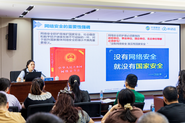 為深入學(xué)習(xí)貫徹習(xí)近平總書記關(guān)于網(wǎng)絡(luò)強(qiáng)國的重要思想,深化網(wǎng)絡(luò)安全宣傳教育,提升黨員干部網(wǎng)絡(luò)安全意識和防護(hù)技能,9月14日,集團(tuán)公司舉辦了“2024年網(wǎng)絡(luò)安全宣傳周”網(wǎng)絡(luò)安全知識講座。邀請中國移動通信集團(tuán)四川有限公司攀枝花分公司客戶部云算力室總監(jiān)高小玲授課。集團(tuán)公司機(jī)關(guān)各部門、各基層單位黨員干部、網(wǎng)絡(luò)運維人員參加了本次培訓(xùn)。